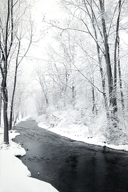 Huntington Park Snow & Red Sticks Heavy Snow Study of Heavy Snow Ice & Snow